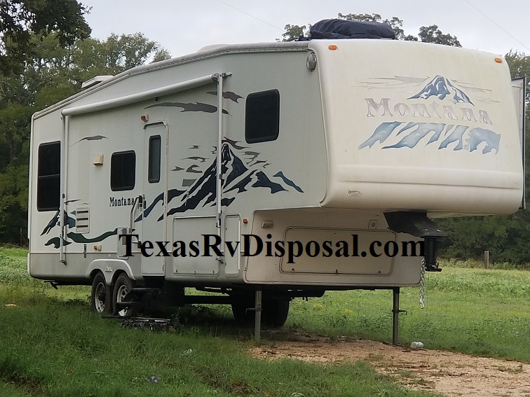 What does Texas RV Disposal do? We dispose of old RV's by demolishing them which demolishing an RV is meticulously dissecting them, separating the wood, vinyl, glass, plastic fiberglass, metal, refrigeration units, and draining all fluids including any fuel. Then disposing of each in the legally accepted manner.